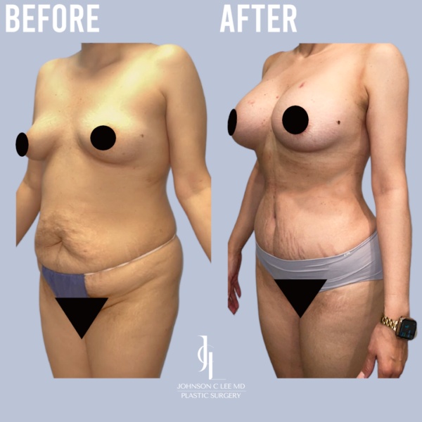 This patient had Liposuction, Tummy tuck, Mommy Makeover and Breast Augmentation